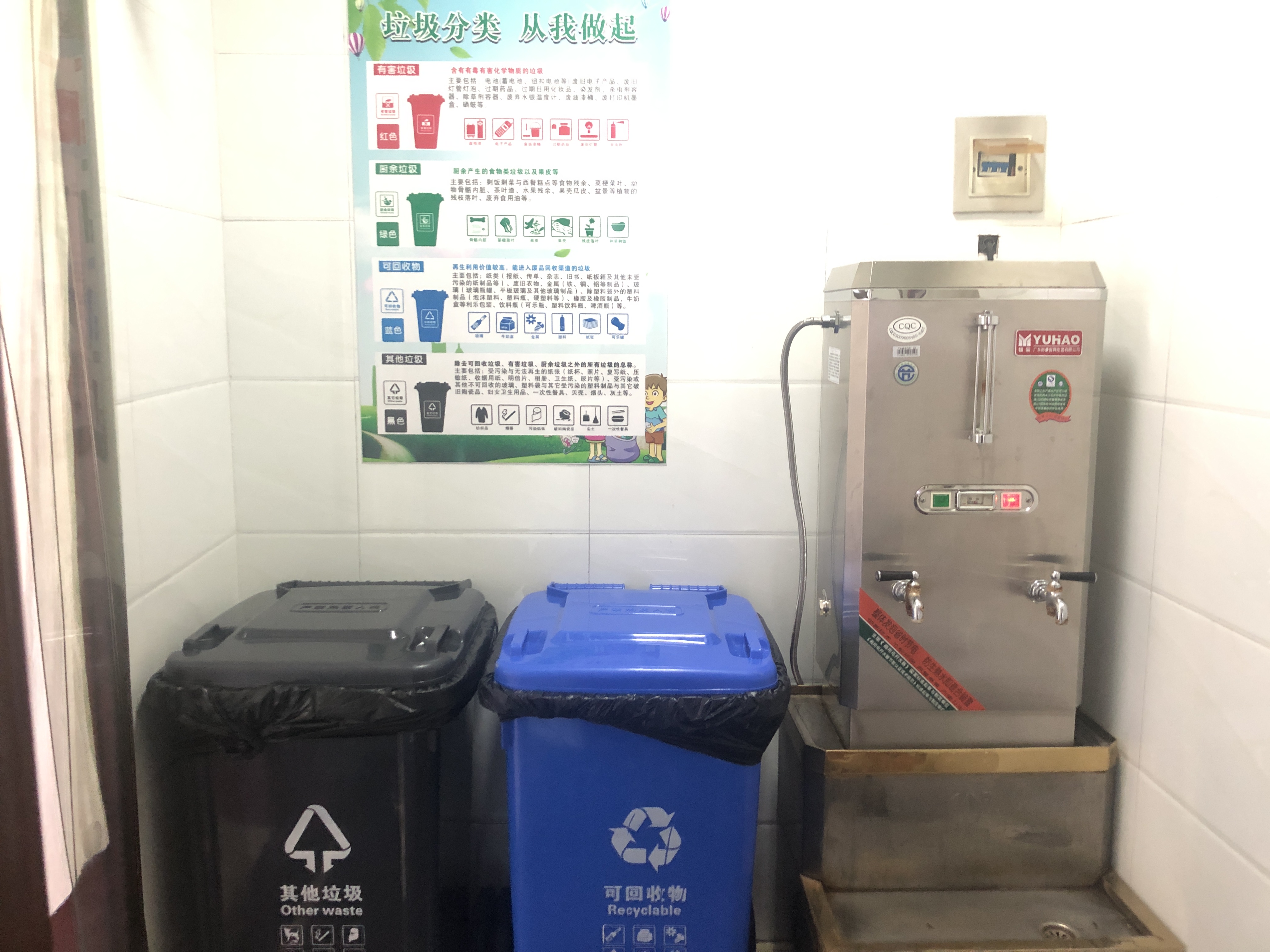 為進一步提高全體員工對垃圾分類的正確認(rèn)識,倡導(dǎo)員工逐步養(yǎng)成垃圾分類投放的良好行為習(xí)慣,在工作生活中自覺做到“垃圾分類,從我做起”,從八月開始,綜合辦公室多措并舉,落實垃圾分類相關(guān)工作。組織部門人員進行系統(tǒng)、全面的垃圾分類知識培訓(xùn);在食堂門口、辦公區(qū)、樓道等公共場所粘貼垃圾分類宣傳海報;在用餐區(qū)域懸掛垃圾分類橫幅標(biāo)語;各樓層設(shè)置不同的分類垃圾桶及分類標(biāo)識;樓層公共區(qū)域由保潔人員負(fù)責(zé),定時巡查垃圾投放情況,負(fù)責(zé)垃圾分類的日常管理監(jiān)督等。